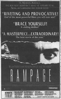 clippings below), William Friedkin’s RAMPAGE is a mess. The basic story, a